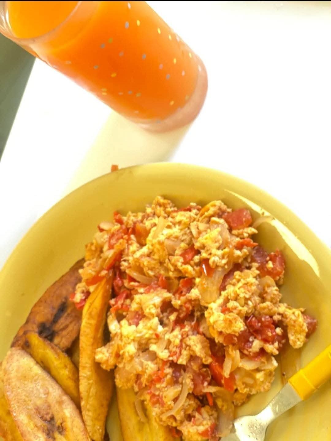 Then after, I proceeded to prepare breakfast for the family, as this was my duty for the morning. This morning, I prepared fried eggs with ripe plantain. It is quite easy for me to prepare this meal.