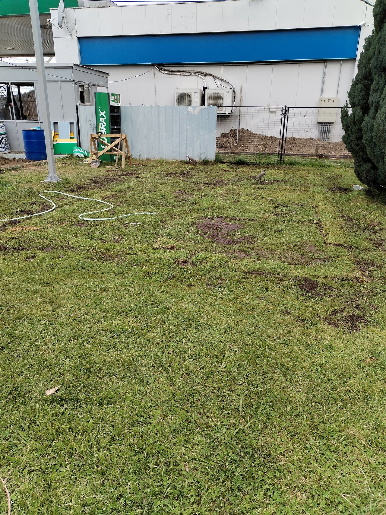 Estuve haciendo, con la persona que me ayuda en el trabajo, una zanja de 40x60 centímetros de profundidad, con el objeto de enterrar un cable de cobre y aterrizar (llevar a tierra) los equipos que se están instalando en una estación de servicio de combustible Petrobrás.