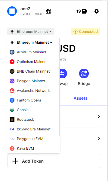 Weitere Netzwerke können wie gewohnt, z.B. über chainlist.org hinzugefügt werden.