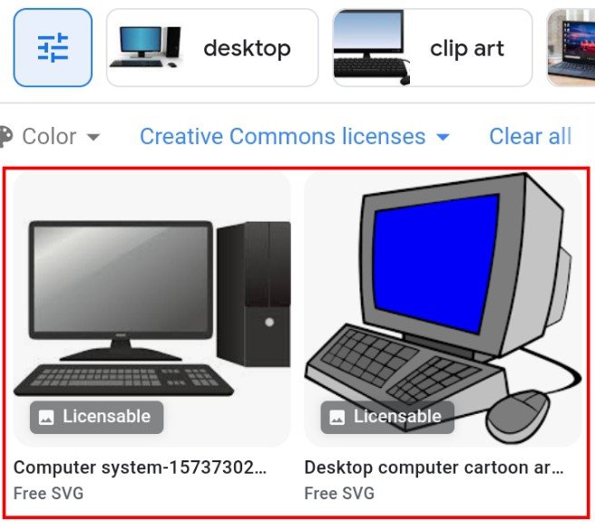 - In the search field above, type in the image you are looking for. Let's say "computer" is the type of image you are looking for, type it in and search.