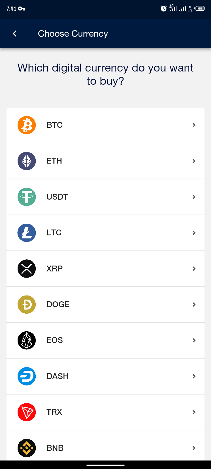 Select your preferred cryptocurrency.