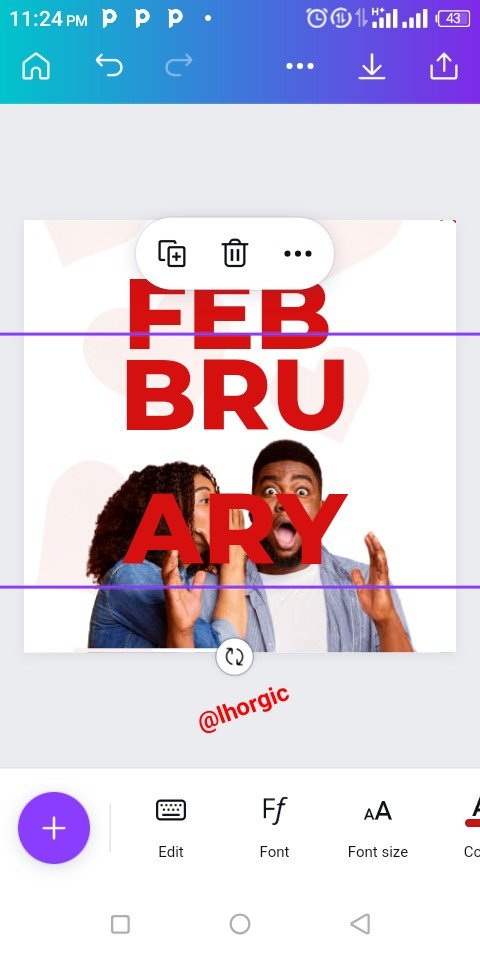 I introduced the text for the design which is FEBRUARY,broken into 3 parts and aligned strategically. You can enlarge your text like I did by dragging the tip of the text. I also applied a text effect on FEB... See that in step 5