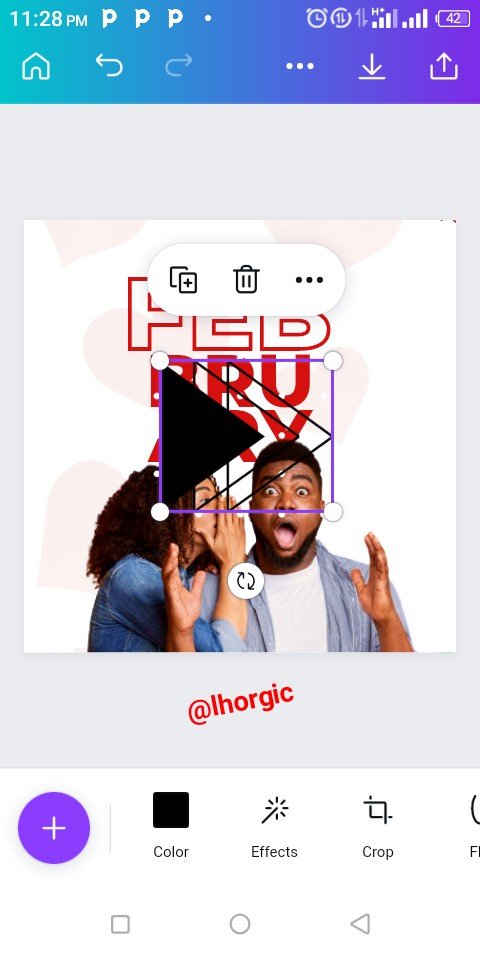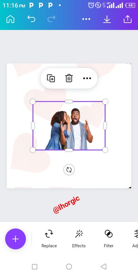 I introduced another element, an image of love from my gallery using the "+" and when it came, I had to resize it and position it strategically just as seen in the screenshots below. Lastly I added other text to complete the design.