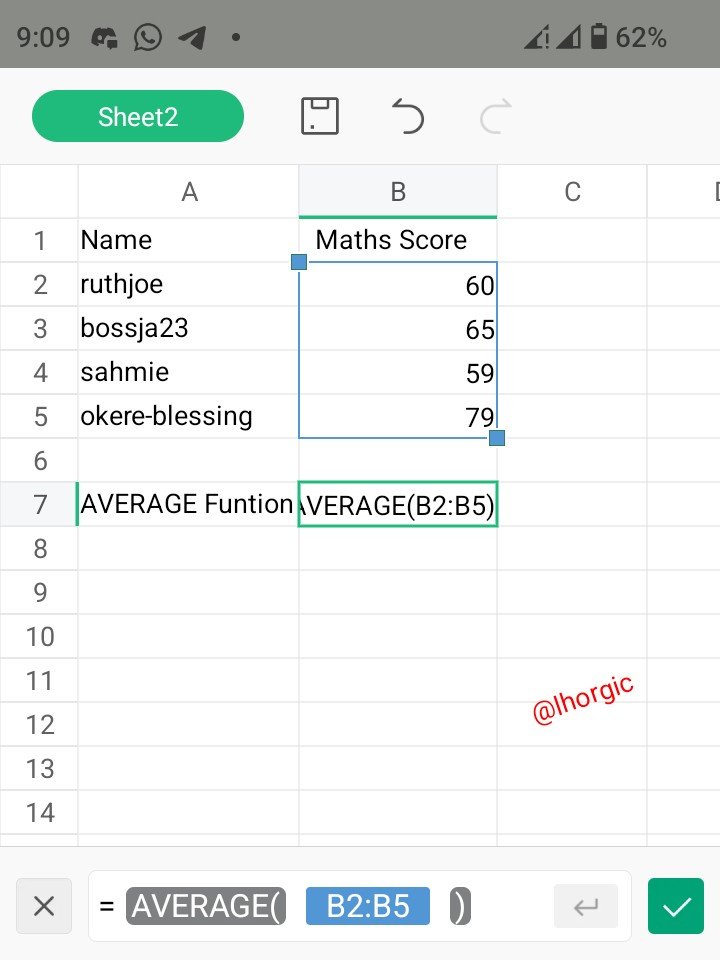 .This means we are adding up B2, B3, B4, B5 and then get the average of the sum total. Below is a visual representation. my average function