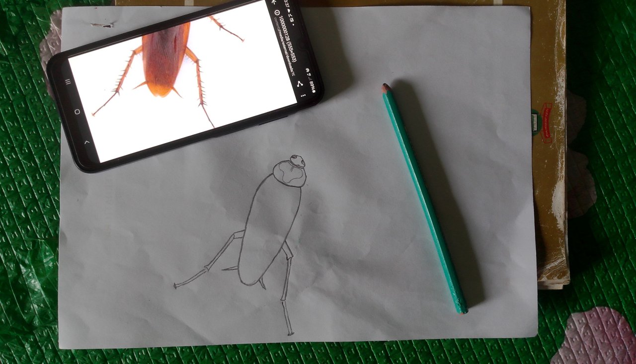 After gathering the needed materials, I started drawing it from the head, brought out the two compound eyes.