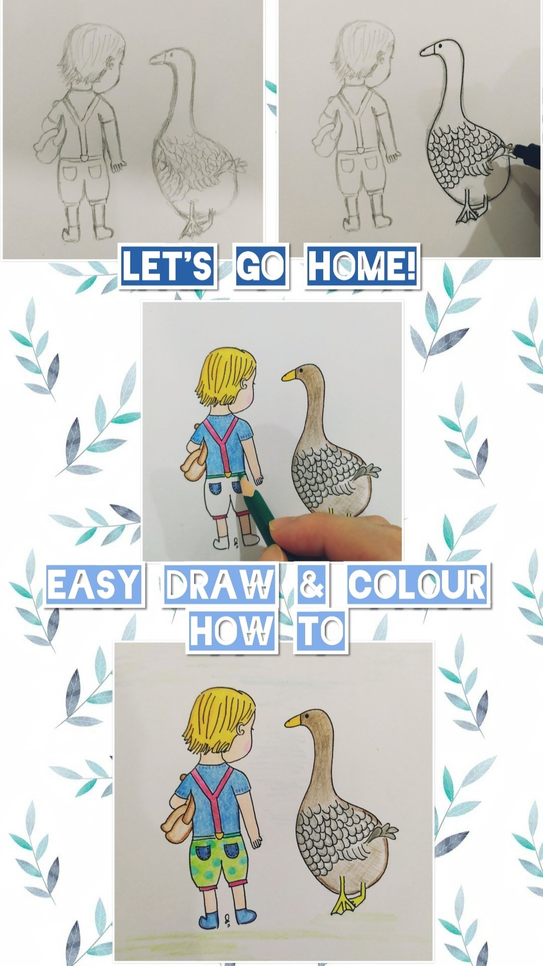 Today i got an idea to draw a little boy who were trying to ask his duck to go home after they played in the garden. It was cute and also easy to do.