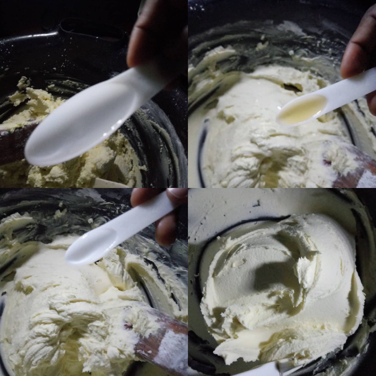 Also add white vinegar if you want and mix. It's optional. I use it because it helps to keep the frosting a bit dry to touch,so it doesn't get messy especially when in transit.