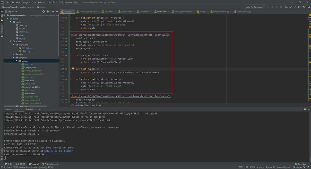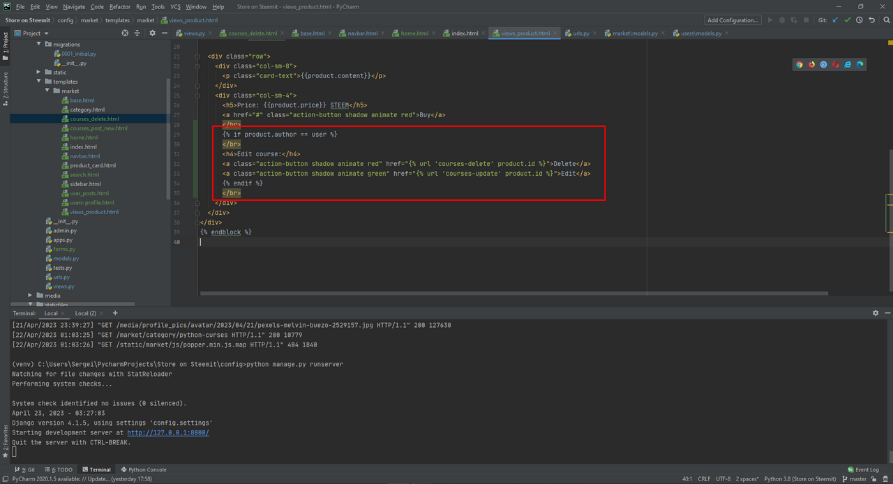 Now we need to create buttons that will be responsible for editing and deleting content. Which in turn will access urls and then through views to the database. And do your job.