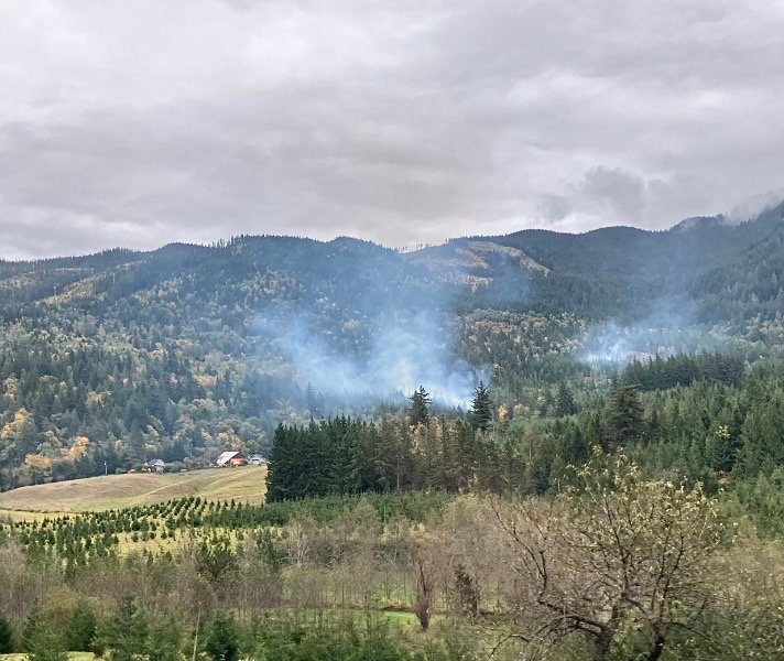 The loggers have started burning the remaining scrap trees, take a look at the first photo I snapped over at “Soaring Eagle” trailhead!