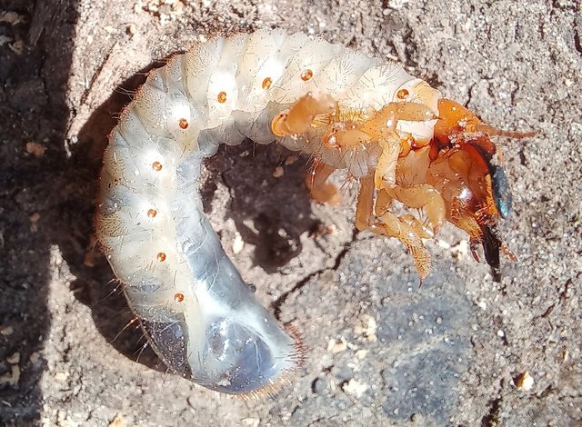 Зато вчера, во время посещения дачи, подвернулась возможность запечатлеть прекрасную до безобразия личинку майского Melolontha или по простецки - майского жука.