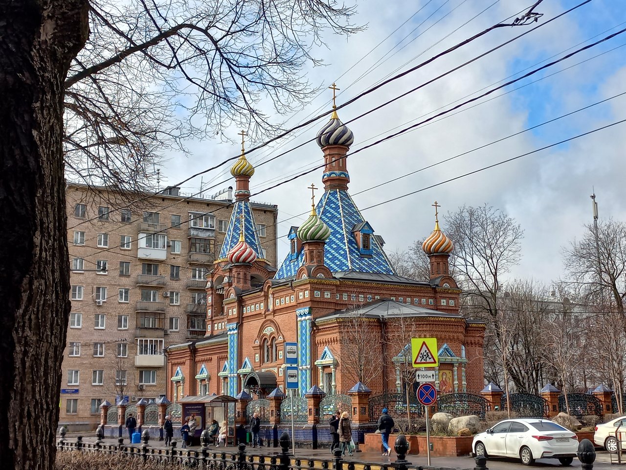 Там я обратила внимание на очень красивый храм. Как я узнала чуть позже, это храм Тихвинской иконы Божией Матери. Он старообрядческий. Был построен в начале ХХ века. В советский период был закрыт, а после развала Союза, его выкупил бизнесмен, отреставрировал и решил передать РПЦ. Старообрядцы просили вернуть им храм и получили отказ. Но Патриарх РПЦ так же отказался принимать такой дар. Так и стоит эта красота закрытой и невостребованной.
