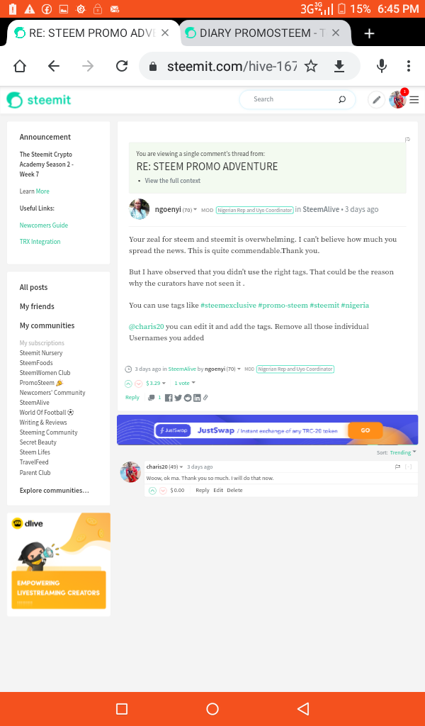 Use of proper tag: every post have a community that best fits it, you cannot write for steemwomen and your core tag is on steemalive by that your post will not be properly seen by those involved.
