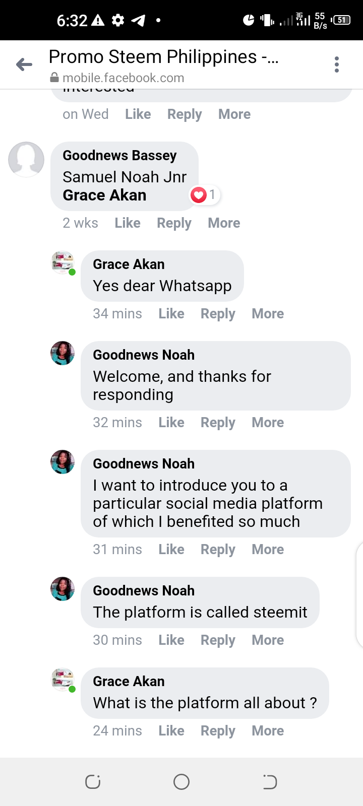 In the course of this Contest I was able to tag some of my Facebook friends on the link provided by @julstamban, and I'm excited that I had positive response from them, I actually tag 3 friends all the three I tag responded, but two chatted with me there, while one just called me through mobile phone for me to explained how the platform works for him, he's a big business-man so I guess he didn't have to time to type that's why he called me instead.