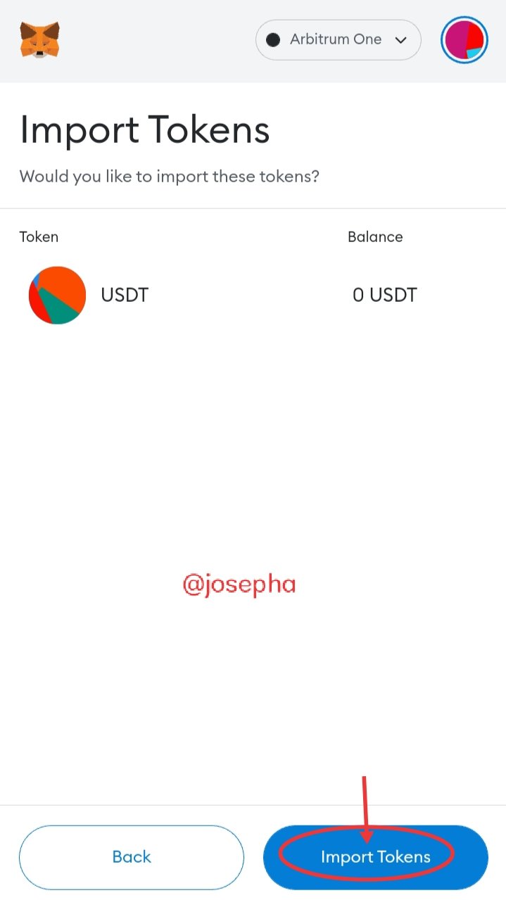 Step 2: After seeing the contract and details of the token you want to add, return back to MetaMask and click on Import tokens.