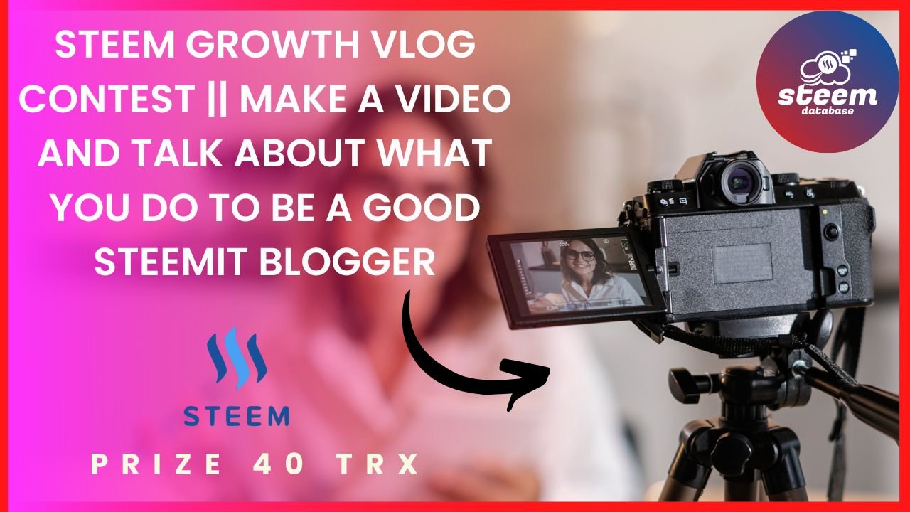 Steem Growth Vlog Contest: what you do to be a good steemit blogger. by @yourusername - Resteem and upvote this post and invite 3 friends to participate.
