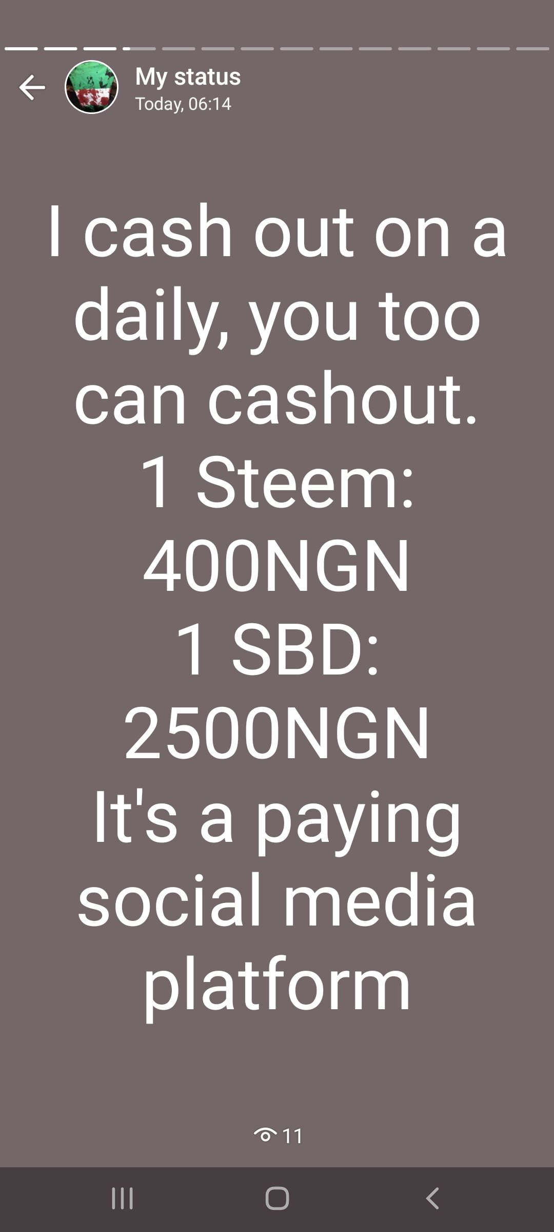 Those are screenshots of the status I posted this morning, you can see the number of viewers that have seen them already, you too can preach the message of Steemit in your own little way.