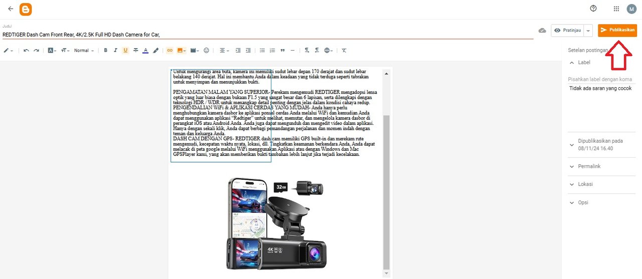 Then we return to the writing view mode. The first thing to do is write a title (as stated on the site), then write product details, don't forget to add photos by clicking the photo symbol then we will enter the gallery on the laptop. After that, wait a few moments waiting for all the photos to enter.
