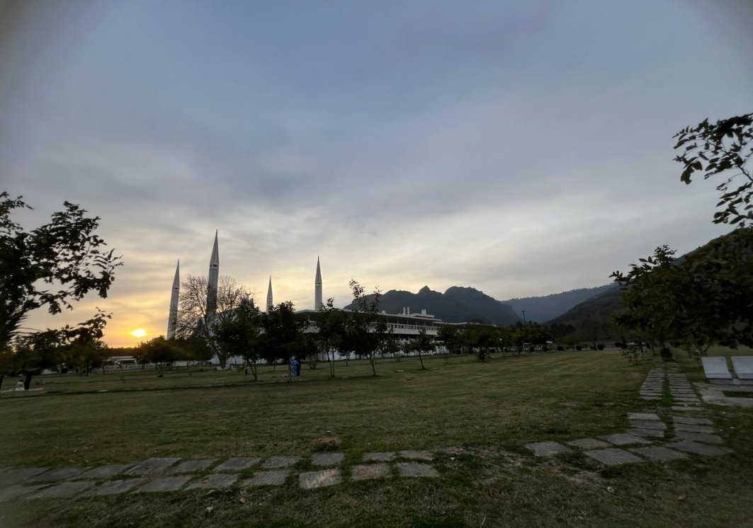We talked and took in Islamabad's beauty as we traveled. Reaching Shah Faisal Mosque took us roughly sixty minutes. It was almost time to break our fast when we arrived. The breathtaking scenery and perfect cleanliness left me in wonder. My heart was moved by the serene and peaceful setting.