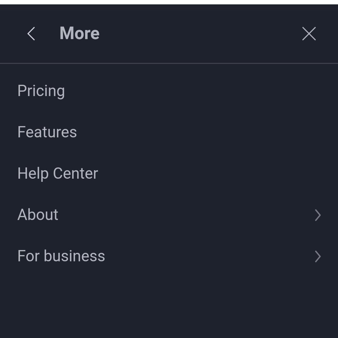 In the more menu we will be presented with some additional information that is also very important for traders and investors such as pricing, features, help center, about, and everything about Business.