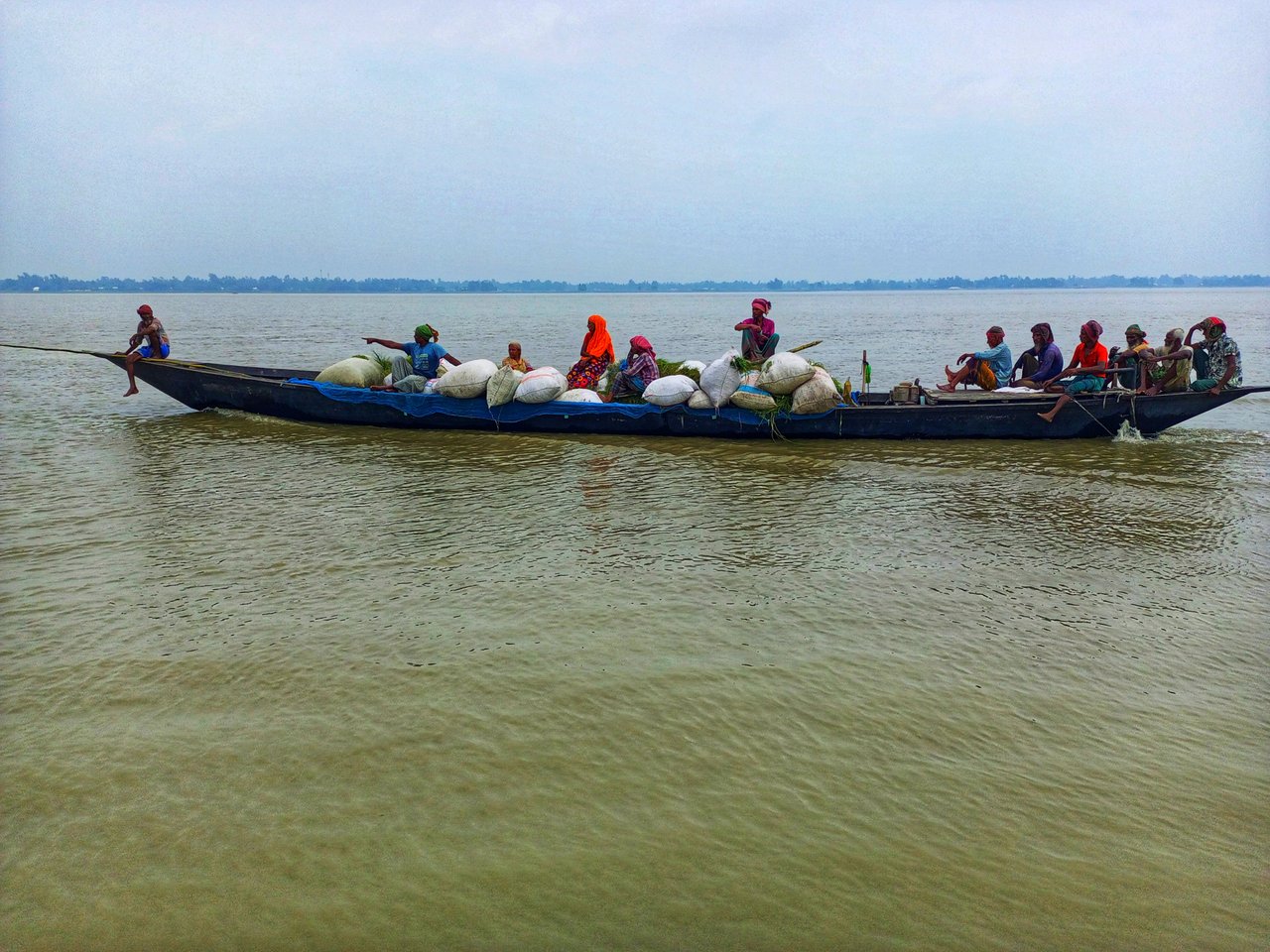 I left for Pingna wharf on the jamuna river with the motorcycle. It took me a long time to go because the communication system was not very good. I reach there at 11:30. After going there I went to a small food hotel. After eating something light, I started looking around. Now that the rainy season is at the end, the water in the river is very low. After a while many boats are seen moving. Boats are the only means of communication for the residents of Char.