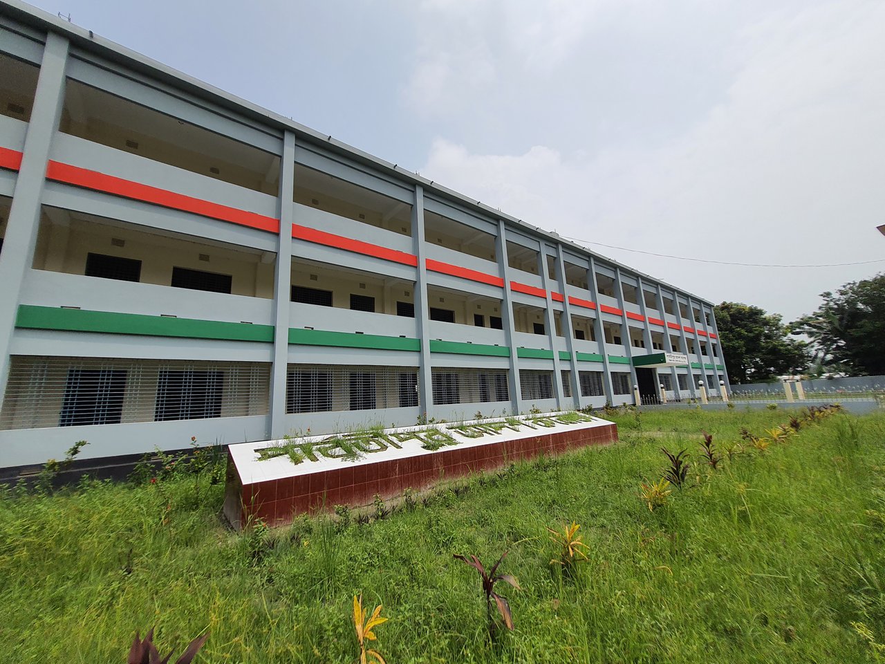 This is Haldibari High School. Haldibari High School is newly decorated. Now it looks amazing. Look at the Academic building, it's just huge.