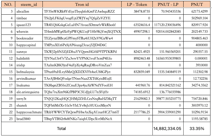 23 community members upvoted the proposal #33. In these upvotes, 17 of them come from PNUT contributors individually. The detailed information can be checked below: