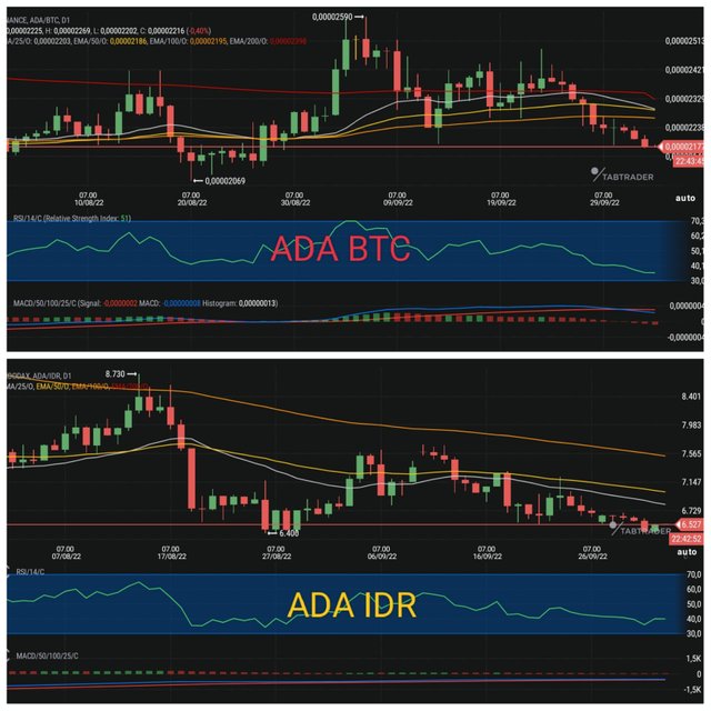 Here are the prices dailys #ADA/BTC & #ADA/IDR for of month August - October 2022 based on the BINANCE and INDODAX market.