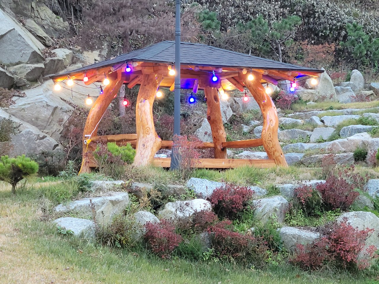 정자에 오색등이 빛납니다.