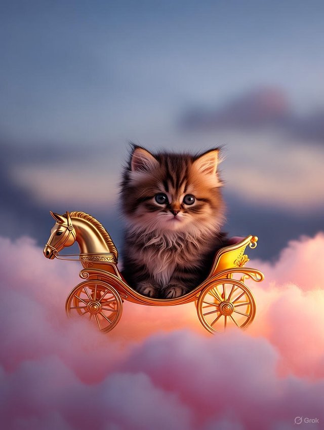 고양이들이 작은 구름 위에서 올림픽 경기를 준비하고 있었다.