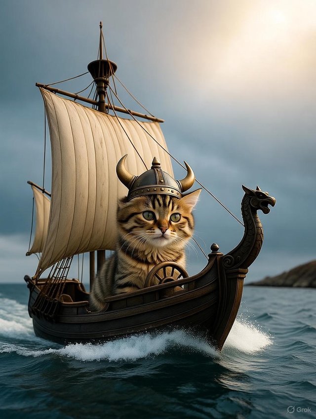 범선을 달리는 바이킹 고양이mia.fobos (67)in zzan • 4 days ago 거친 바다 위로 바이킹 고양이가 탄 범선이 흔들렸다. 바람이 돛을 부풀리며 파도와 함께 춤췄다. 고양이는 꼬리를 세우고 선체 위를 능숙하게 걸었다. 눈빛은 모험과 도전으로 반짝였다. 멀리 수평선에는 새로운 땅의 그림자가 보였다. 파도 속에서 고양이는 발톱으로 밧줄을 단단히 잡았다. 바다의 소용돌이에도 두려움 없이 항로를 지켰다. 해질녘 붉은 햇살이 범선과 고양이를 물들였다. 그날, 고양이는 진정한 바이킹 선장이 되어 전설이 되었다. #zzan #kr #krsuccess #steem #steemexclusive #steemzzang #nft #upvu #cur8