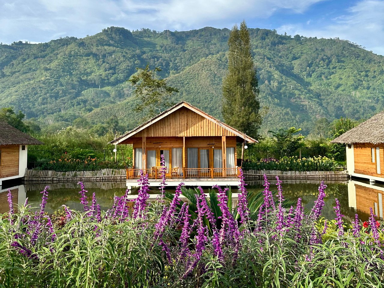While I was sitting and enjoying my coffee, I noticed a beautiful resort right beside the café. It looked so nice and quiet, with small wooden cabins built above the water. I felt curious, so I walked through a small gate behind the café that led to the resort area.