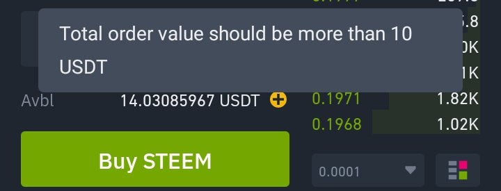 Then proceeding to binance as seen above, I have a total of 14USDT to spare for the transaction but before then I tried to buy steem worth of 5USDT and I wasn't allowed to do so.