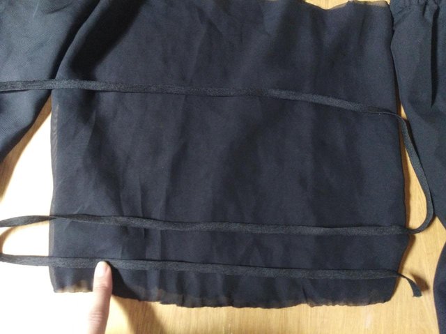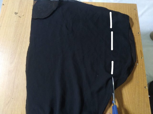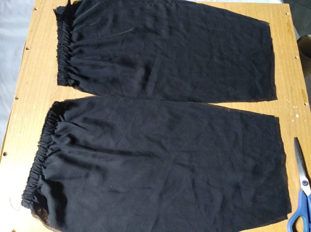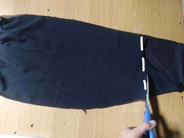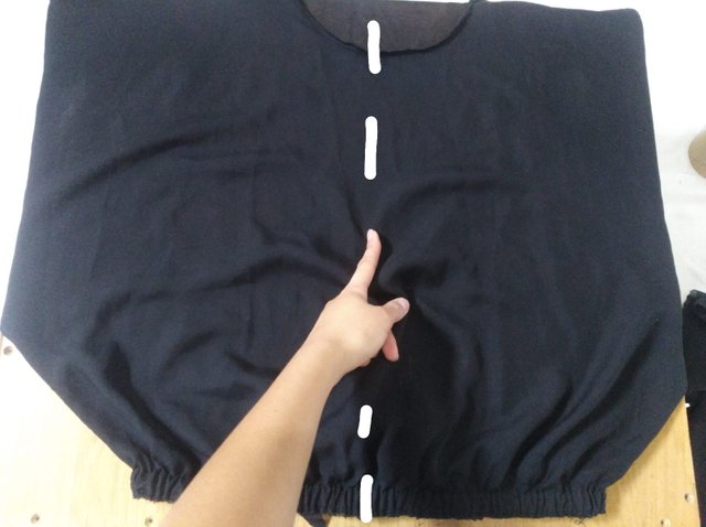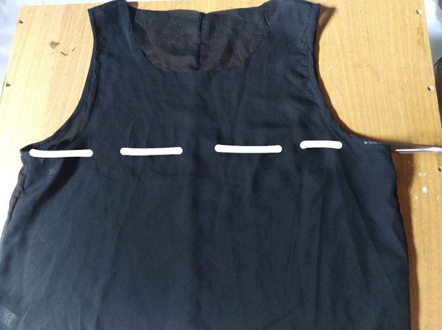 We put aside the sleeveless blouse to make the sleeves with the first blouse, we cut off the sleeves and also the excess.