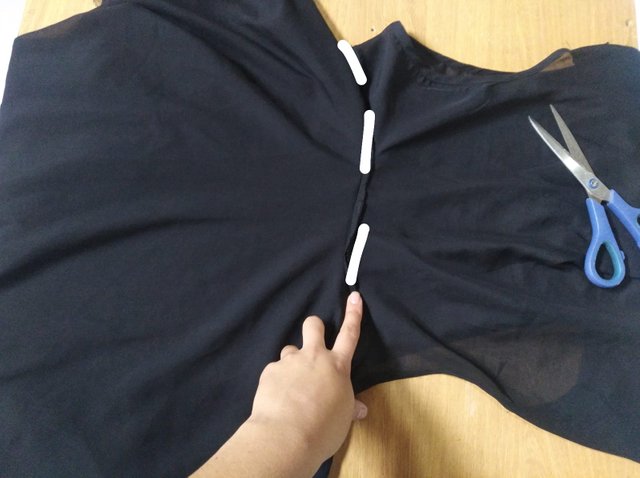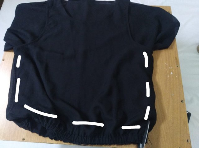 We will use few things, only the blouse, scissors, elastic, thread and sewing machine or needle in case we do not have the machine.