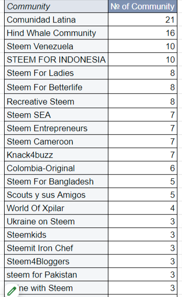 During this phase of curation, we reached out to authors from 41 different communities with Steem Venezuela and steem4betterlife topping the list.