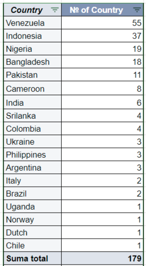 For this week, a total of 18 countries were visited by the team with Venezuela topping the list, followed by Indonesia, Bangladesh, and Nigeria respectively.