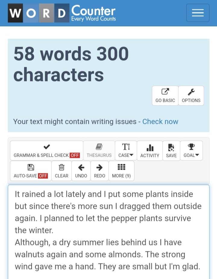 Although, a dry summer lies behind us I have walnuts again and some almonds. The strong wind gave me a hand. They are small but I'm glad