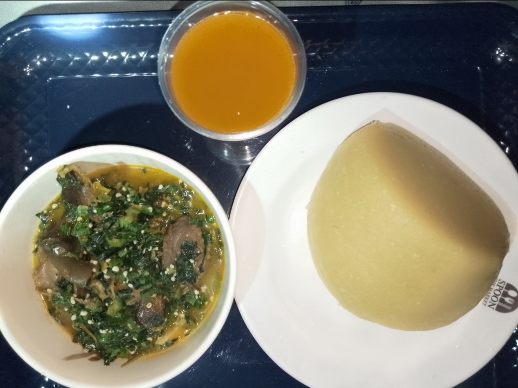 Meal 1: Lunch: Vegetable Soup With Garri and Orange Drink