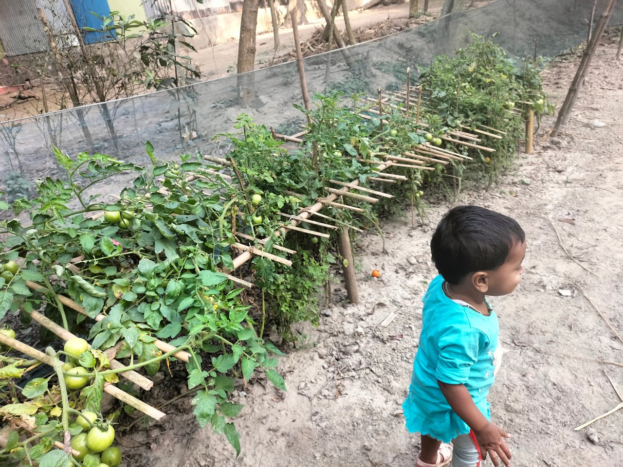 Good morning I woke up I got a little busy with the kids work and started taking care of the kids. Then planted tomatoes near my house. I and my little girl reached there very easily and brought some tomatoes as per my quantity. Although while picking tomatoes my kid started disturbing me