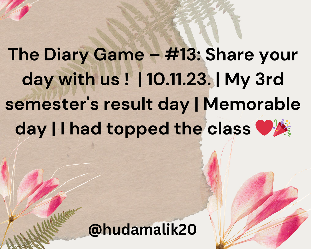 The Diary Game – #13: Share your day with us! 10.11.23 | My third semester's result | I had topped the class ❤️🎉.