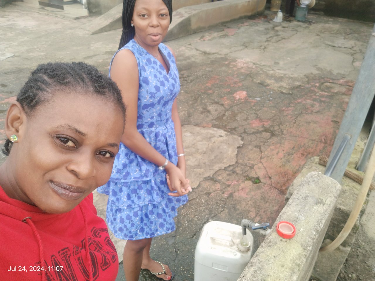 Since we are two that were send to fetch the water, we had to carry the gallon in turns, that's when I carried it and get tired my colleague will also carried, like that till we get to the shop.