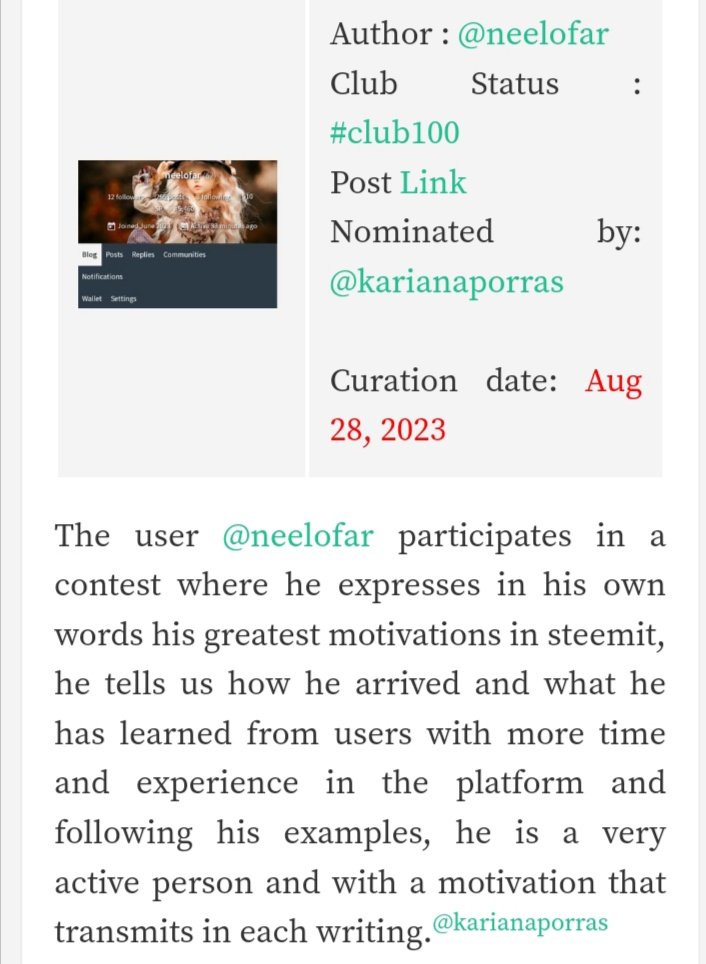 I see varios notificatin in which i first click on @ heraidy who mention my name . When i open it its was the Curation Report by Team Newcomer - Week 4 | August 2023 and in this my name was nominated in Top Post Nominations by Respected @karinaporres .I was exteem happy to see my name in top list .