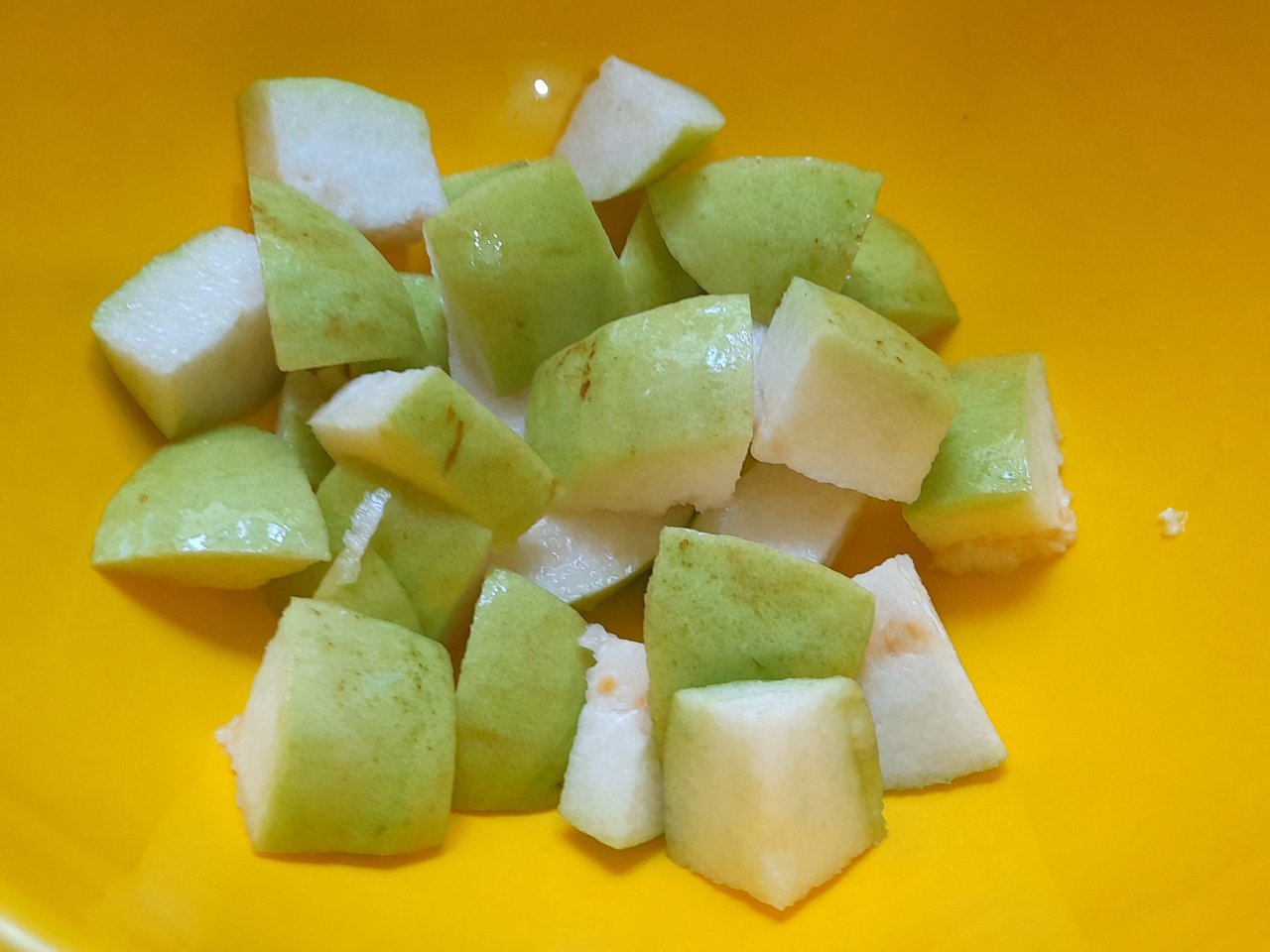 After 2 pm I ate fruit. Today I ate watermelon and guava. Cut the guava into small pieces and mix it well with salt and pepper flux. I like to eat guava like this. I have shared this recipe before on this platform. You can try guava like this, it is really delicious.