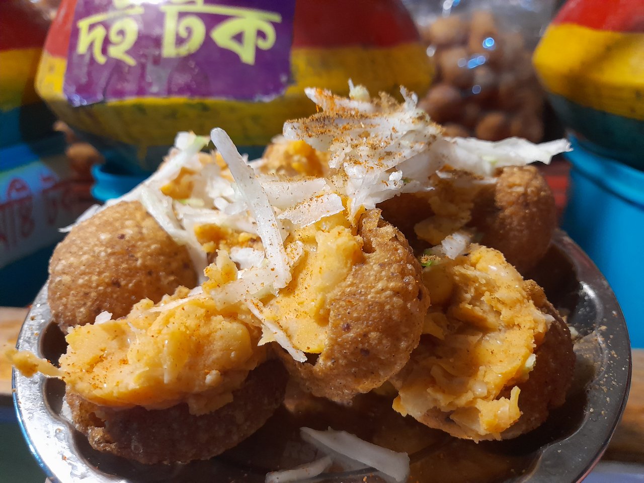 After leaving the fair, we sat down at a street food shop. From there we order some street food. First we eat fuchka and velpuri there. Then we eat chicken momos. The chicken momos were very tasty but it took too long to be served. If they were served in less time it would have been better for us. Later the main chef told us that his helping hand did not come today so it was a little late to serve the food. Then we returned home after eating from there.