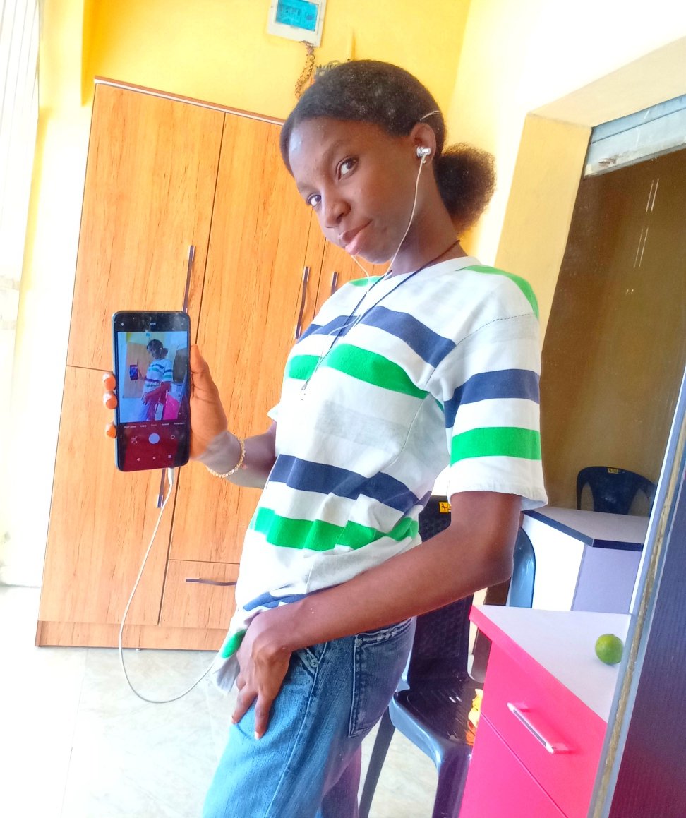 I got tired and decided to take another set of pictures again and the pictures weren't up to five anyway because I wasn't really in the mood of taking pictures after the numerous I took in the morning that day. I snapped a selfie picture facing the mirror that's why you can clearly see me in my phone screen. I just felt like trying something new that afternoon. I started watching movies again till I kept my phone because the battery was now below 40%