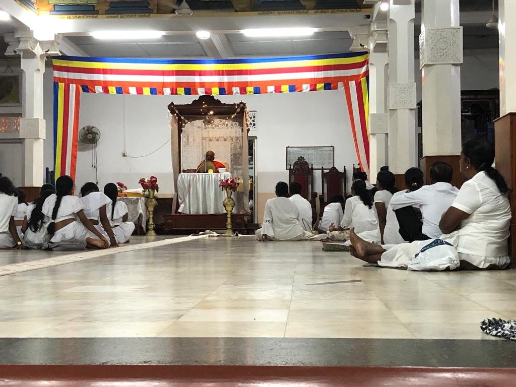 At around 5:00 p.m., we left home for the temple. It was drizzling by the time we reached the temple. Even though it was about to rain, there were many people gathering at the temple to listen to the Dhamma sermon. A special priest from the University of Colombo was invited for today's special Dhamma preaching ceremony.