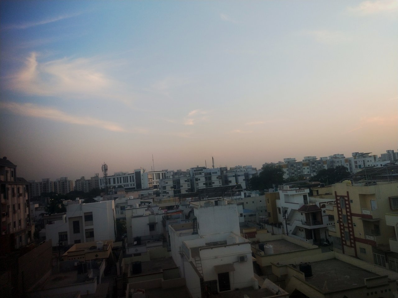 In the evening, I like to see the outside view from the window of your room. That's why even today in the evening I was looking out of my window. The orange-colored clouds in the sky looked very beautiful. Orange clouds were visible on one side and white clouds were visible on the other side. I had taken pictures of all these beautiful views. Many pigeons were sitting in one place, so I captured that picture also in my phone's camera.