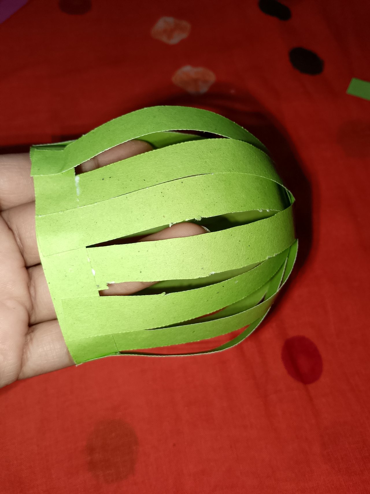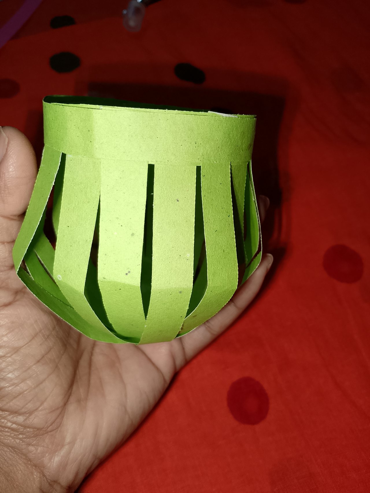 Around the edge of the basket’s upper circle, I applied glue. Then, I adjusted another paper over it. Now, it looks sturdy and smooth. If the basket is turned upside down, it will look just like the picture.