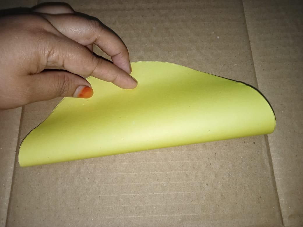 I took a yellow paper. Using a ruler to draw a circle, cut away the remaining portion with scissors. Similarly, cut some more yellow paper.