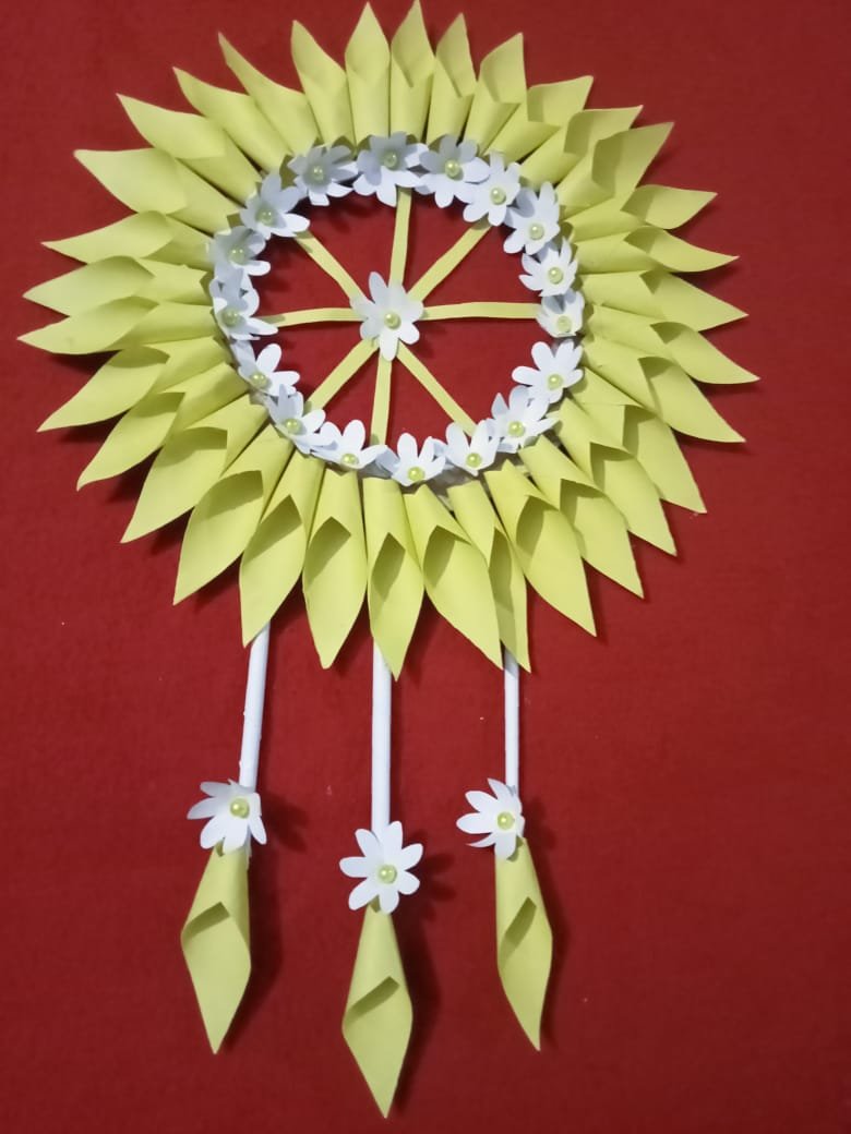 On the other side of the wall mat, I cut thinly applied yellow colored paper, and glued flowers hanging down to enhance the beauty of the wall mat. Now my Walmart is ready. I shared my selfie with Walmart.